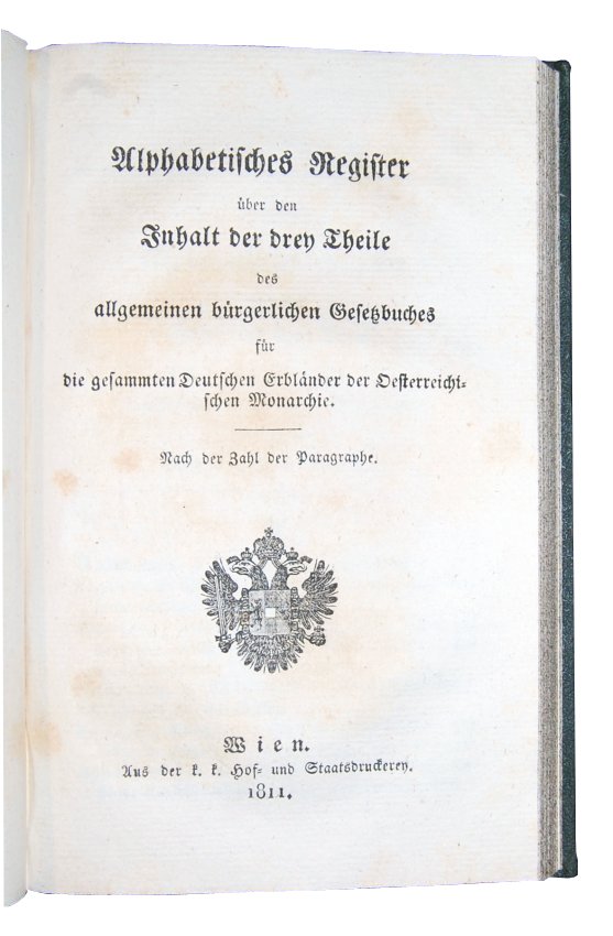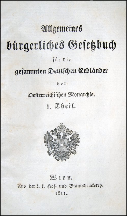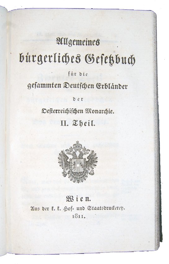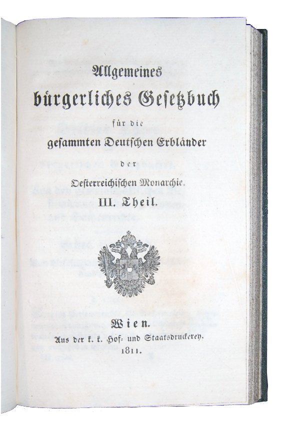 Allgemeines burgerliches Gesetzbuch fur die gesammten Deutschen Erblander der Osterreichischen Monarchie. Wien: aus der k.k. Hof- und Staatsdruckerey, 1811.