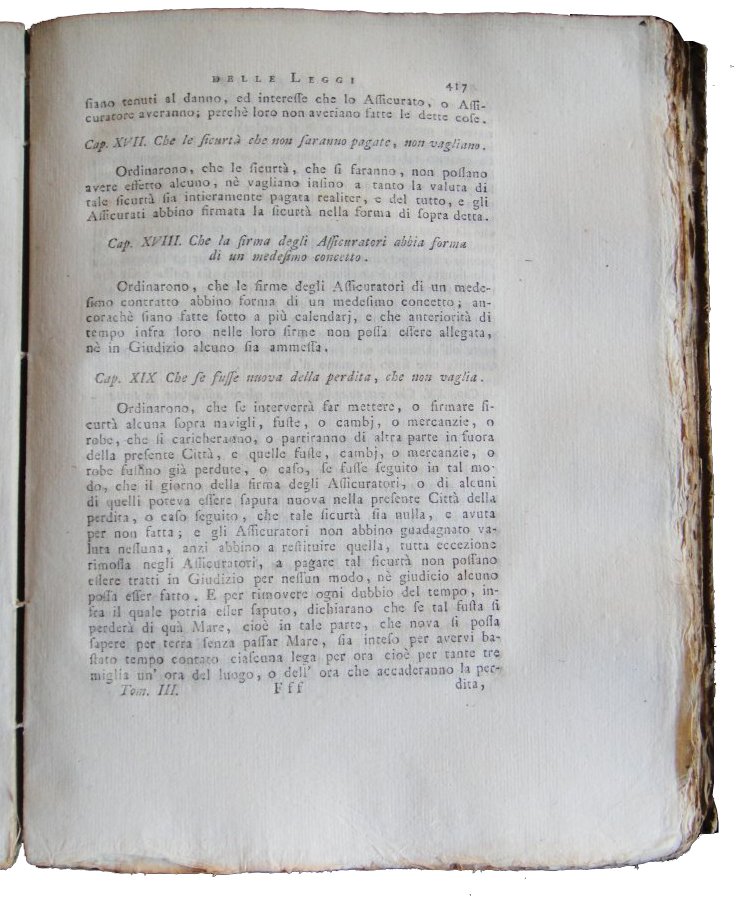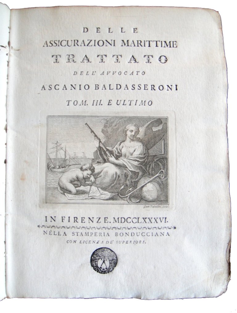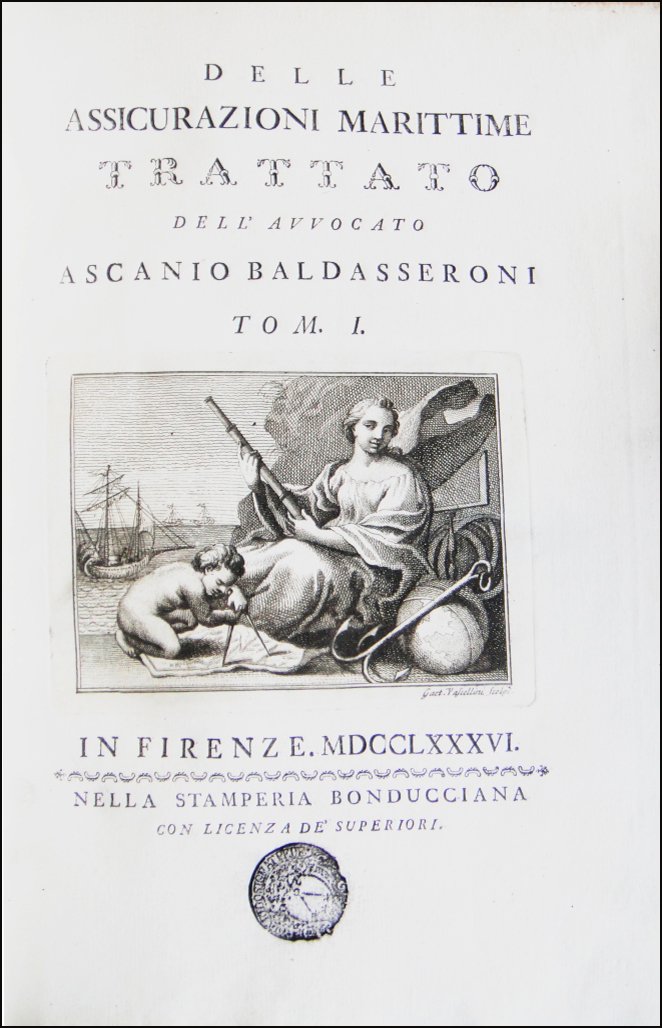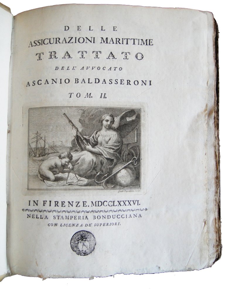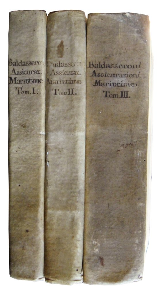 BALDASSERONI, ASCANIO. Delle assicurazioni marittime trattato dell'avvocato Ascanio Baldasseroni. Tom. 1. [-3. e ultimo]. In Firenze : nella Stamperia Bonducciana, 1786