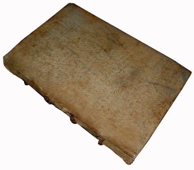 Two works bound together in a volume in folio (430x270 mm); contemporary full vellum, with four raised bands spine (rebacked, traces of use), calligrafic title at lower edge; pp. 173, [1], [1, blank]; [122]. The page numbering is progressively made at the recto of the leaves. Text in Latin, printed in two columns.