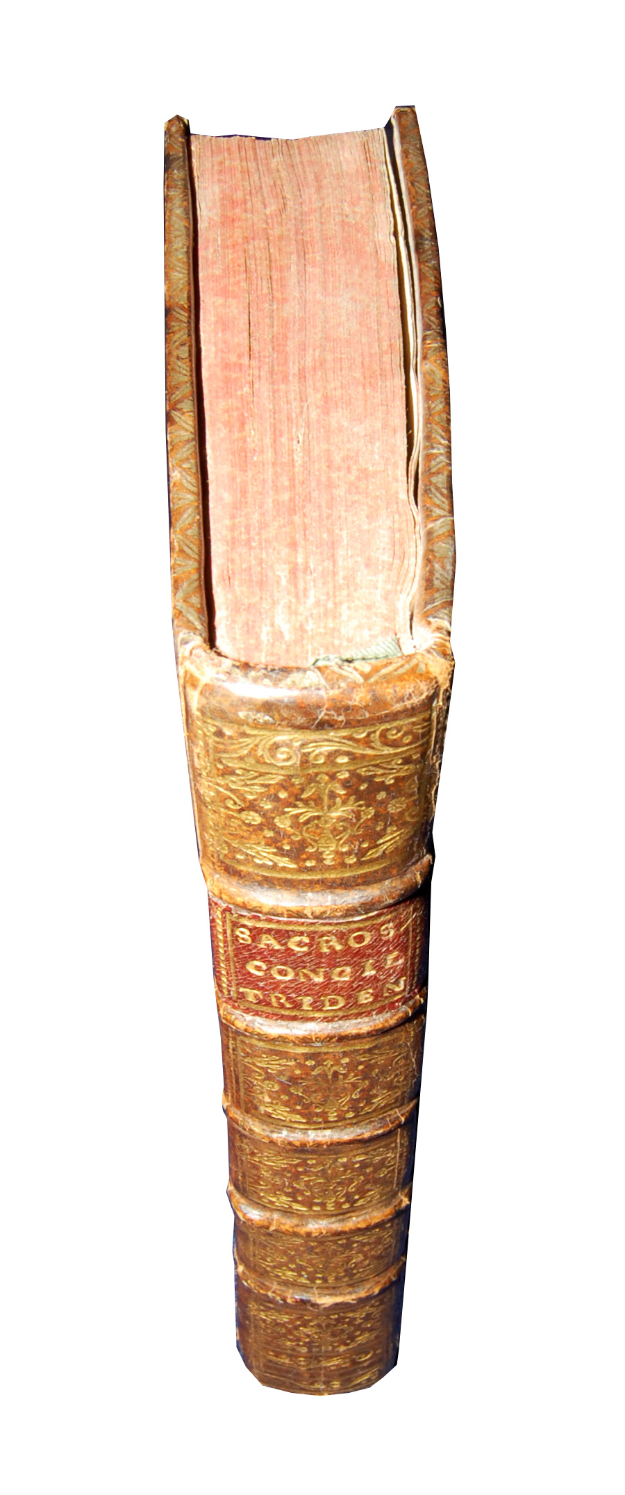 Plein veau brun du 18e s., dos à nerfs richement décoré. Bel ex. de cette rare édition lyonnaise des actes du Concile de Trente avec un « Index librorum prohibitorum ». Le premier Index romain fut publié par le pape Paul IV en 1559 à la demande de l'Inquisition, et confirmé en 1564. La Congrégation de l'Index fut instituée en 1571. L'Index fut régulièrement mis à jour jusqu'en 1961, par ajout de la Congrégation de l'Inquisition ou du pape.