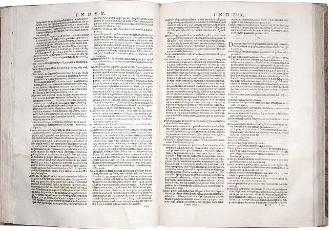Woodcut head-letters, woodcut tail-pieces. Text on two columns.