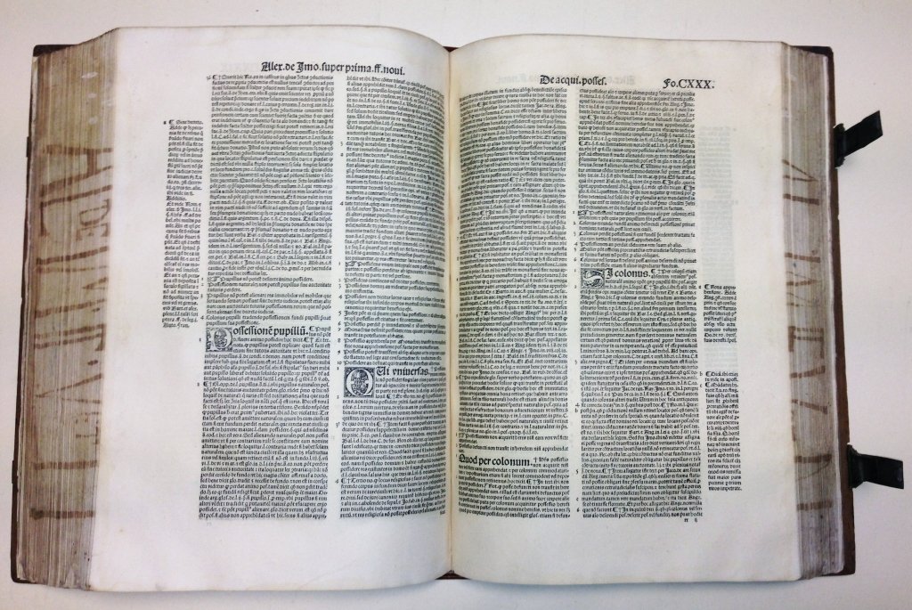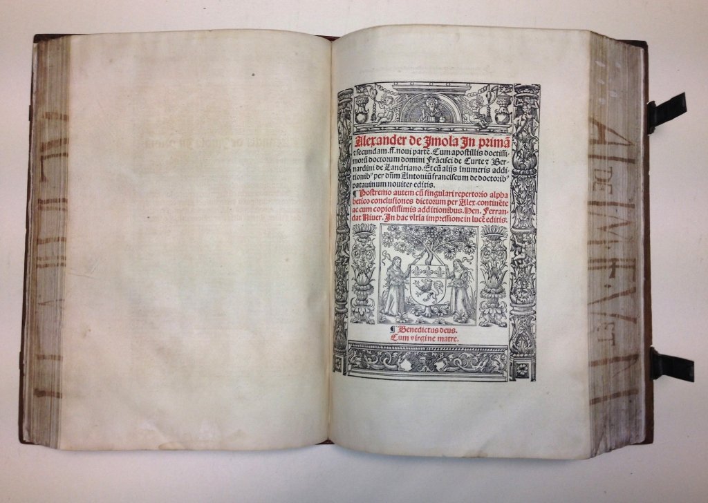 Very rare Alexander Da Imola's commentary on both Justinian's Digestus Vetus and Digestum Novus with the additions of Francesco Corte, Bernardino da Landriano, Antonfrancesco Dottori and Henri Ferrandat.