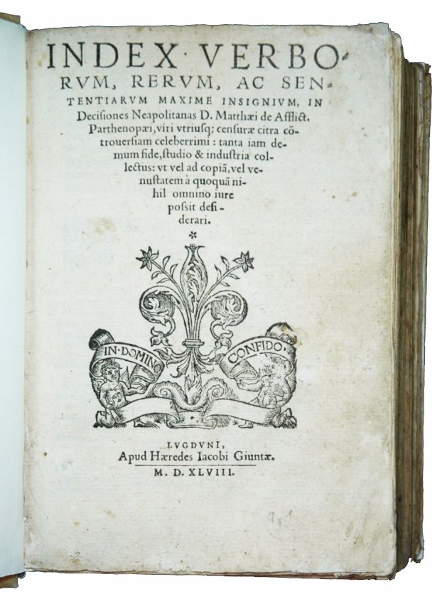 D'Afflitto, Matteo. Decisiones Sacri Consilii Neapolitani. Lyon: apud Haeredes Iacobi Giuntae, 1548.