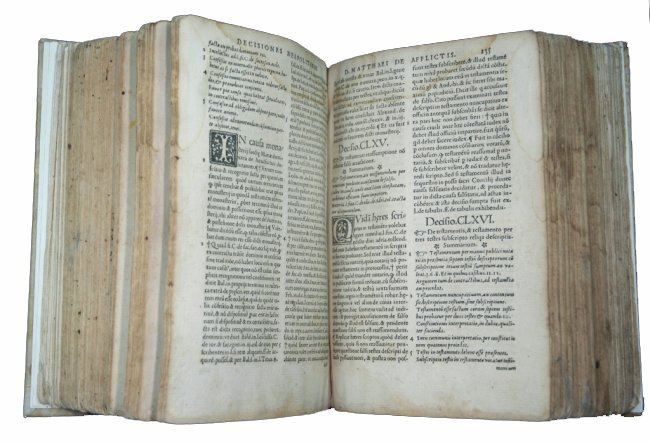 Valuable edition of the collection of verdicts of the Royal Courts of Naples with the commentary of the renowned jurist Matteo D’Afflitto.
