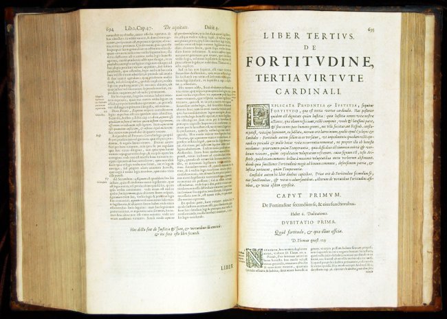 The work is preceded by the dedicace to Albert VII, Archduke of Austria, made in Louwein on 28 Aug., 1605), the preface and the explanations; the text is divided in four books, one for every cardinal virtue: De prudentia (Prudence), De iustitia et iure (Justice), De fortitudine (Fortitude) and De temperantia (Temperance). Then, the text is followed by the Appendix (Appendix ad dubitationem XXIII. cap. XX. lib. II. de monte pietatis occasio scriptionis, p. 809-825), the Approbatio and the Index.