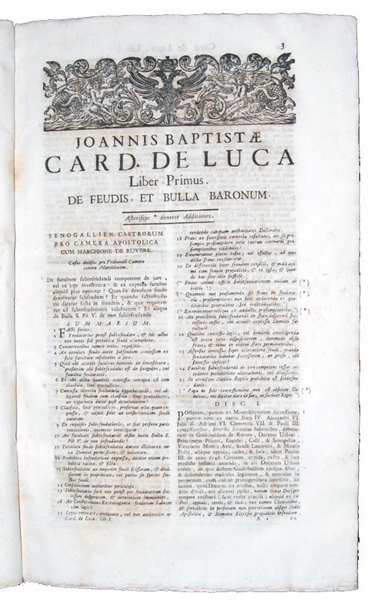 A COMPREHENSIVE LEGAL ENCYCLOPEDIA BY GIOVANNI BATTISTA DE LUCA, WITH THE FAMOUS THEATER OF TRUTH, AND OF JUSTICE IN CANONICAL AND CIVIL DISPUTES, TOGETHER WITH TREATIES ON INHERITANCE, PENSION AND SALARY OF CHURCHMEN