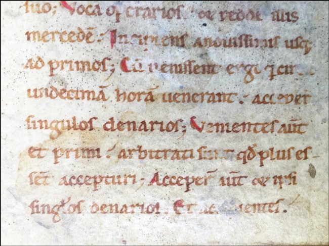 The binding is partly composed with a vellum from a Medieval manuscript written in a fine semigothic handwriting.