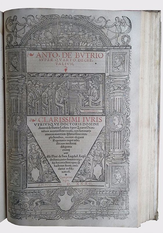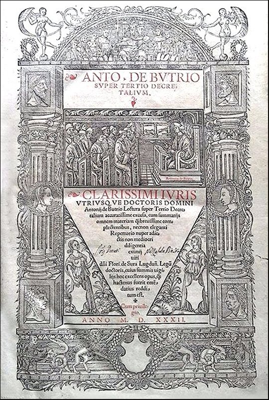 De Butrio, Antonio.Lectura Super tertio et quarto decretalium.Lyon: Luxembourg de Gabiano, Hugues de La Porte and Jean Crespin, 1532.