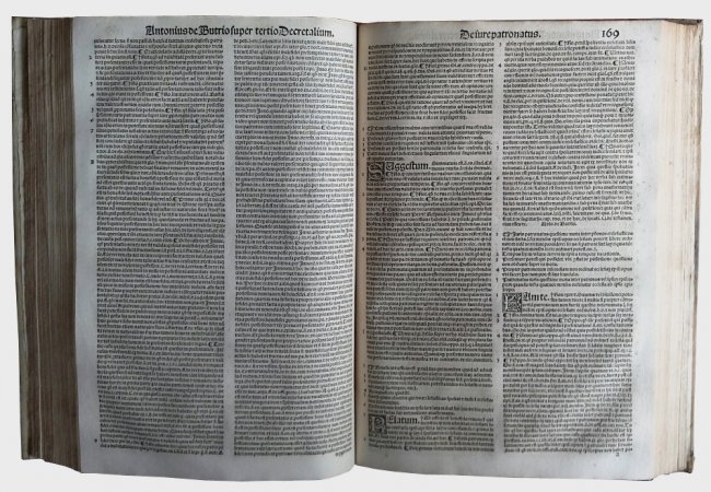 Fine early Lyon edition of Butrio's commentary on third and fourth book of Decretals.