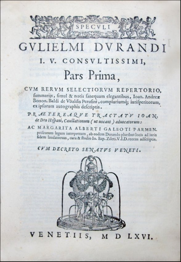 Durand, Guillaume. Speculi Gulielmi Durandi Venetiis, [Printer Device with Fountain], 1566.