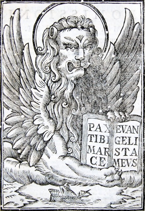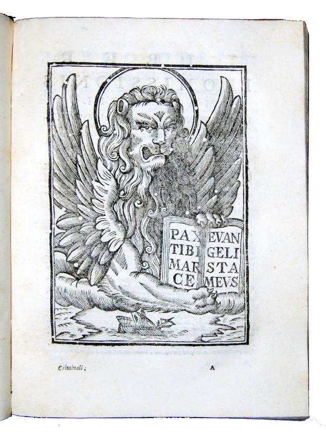 Xylographic image at frontispiece representing the Lion of Saint Mark, holding the paw on the book of the Gospel opened with the words: Pax tibi Marce Evangelista meus. Another xylographic image representing the Lion of Saint Mark at leaf A1r.