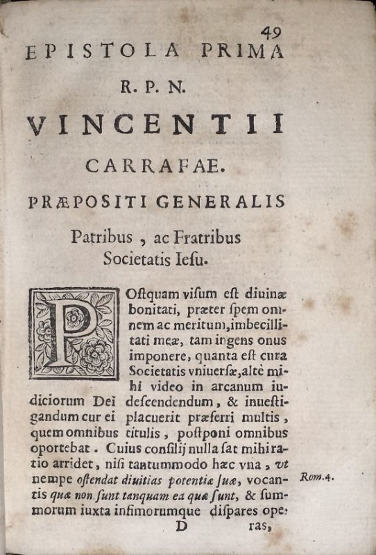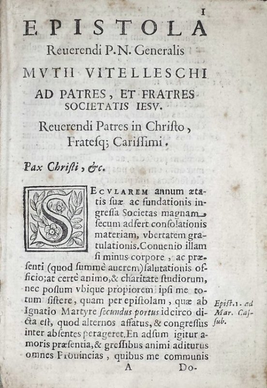 2.Vitelleschi, Muzio. Epistola reuerendi p.n. generalis Mutij Vitelleschi ad patres, et fratres Societatis Iesu [...] [Dated at end: Romae 15. Nouemb. 1639]