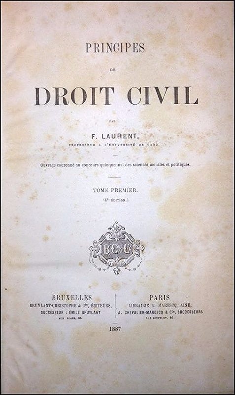 Laurent, François. Principes de droit civil. Bruxelles: E. Bruylant; Paris: A. Chevalier-Marescq, 1887.