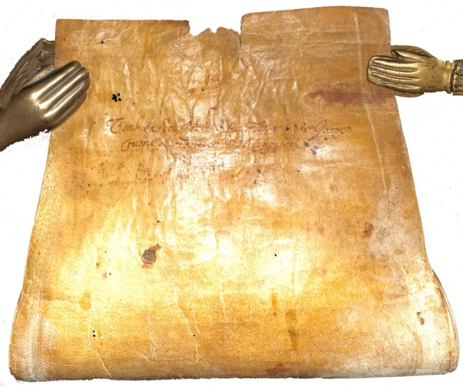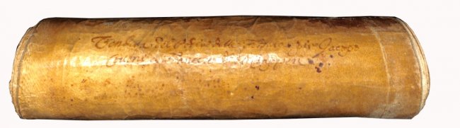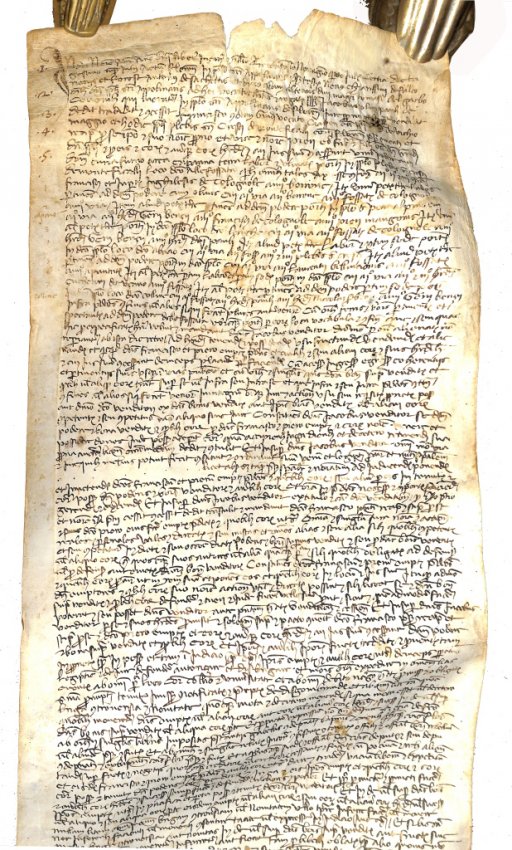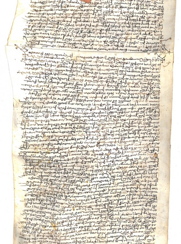 A long scroll of parchment (126x26 cm), written in brown ink by a 15th century notary handwriting .
