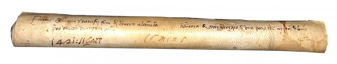MEDIEVAL NOTARY MANUSCRIPT ON VELLUM, Verona, 11 January 1421.A scroll of...