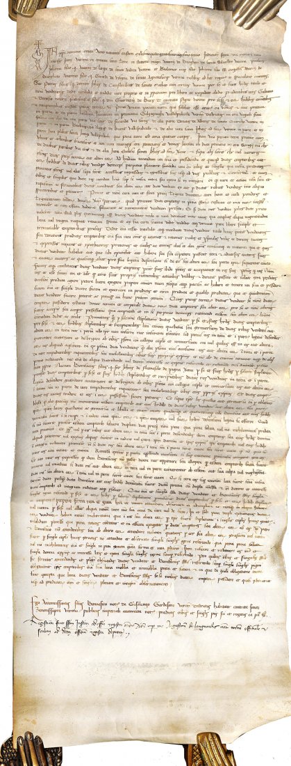 A scroll of parchment (63,5x24 cm), written in sepia ink by a very elegant 15th century cursive writing.Text in Latin.