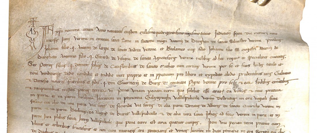 An agreement concerning the sale of some grassland and wood land in the area of Galgagnago (now Gargagnago) in Valpolicella (the renowned area of Verona wine).