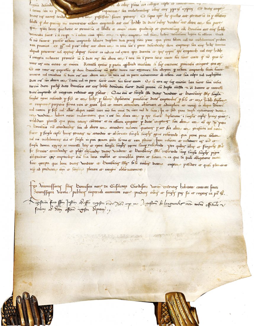 The agreed price was 300 Ducats auri boni et iusti ponderis («pure gold and of proper weight») and 33 soldi veronesi.