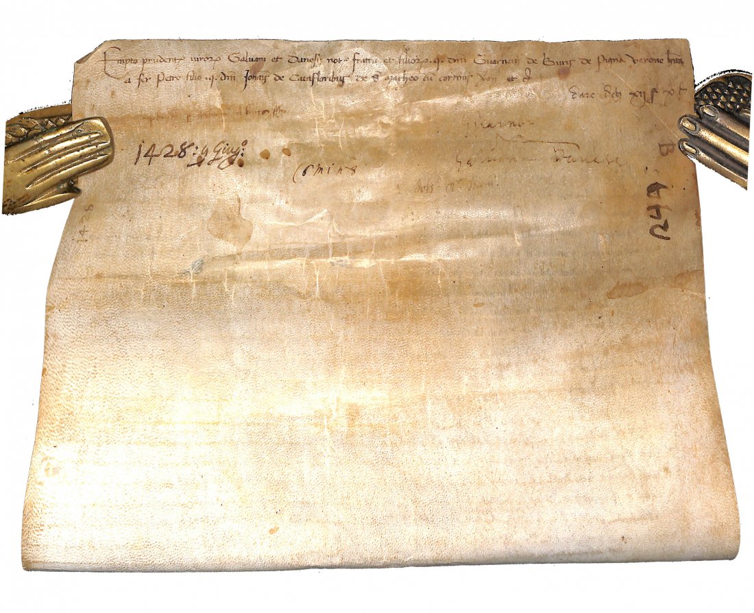 MEDIEVAL NOTARY MANUSCRIPT ON VELLUM, Verona, 9 June 1428.A scroll of...