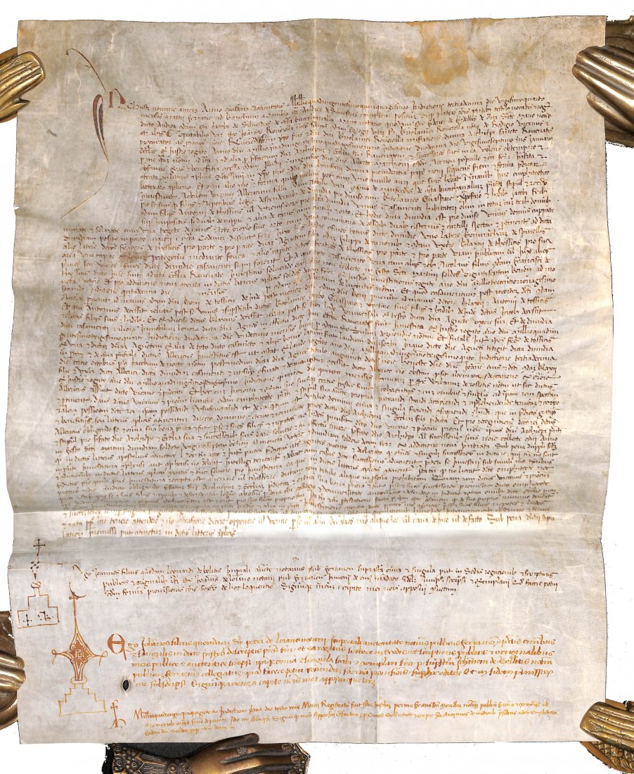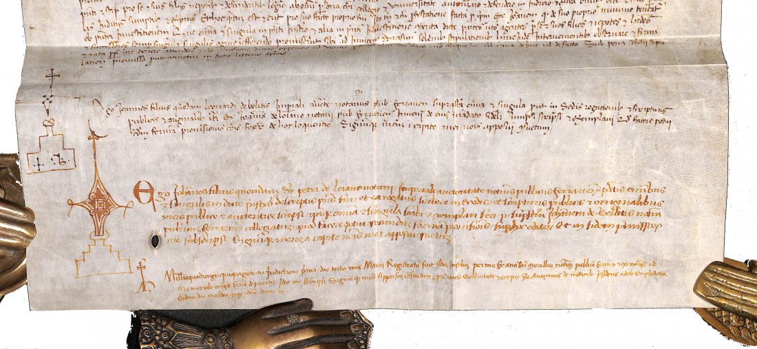 The act was prepared by the notaries Giovanni de Belitis, Giovanni de Lorano and Anastasio Morello.