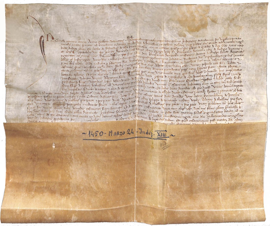 MEDIEVAL NOTARY MANUSCRIPT ON VELLUM, Ferrara, 24 March 1450.