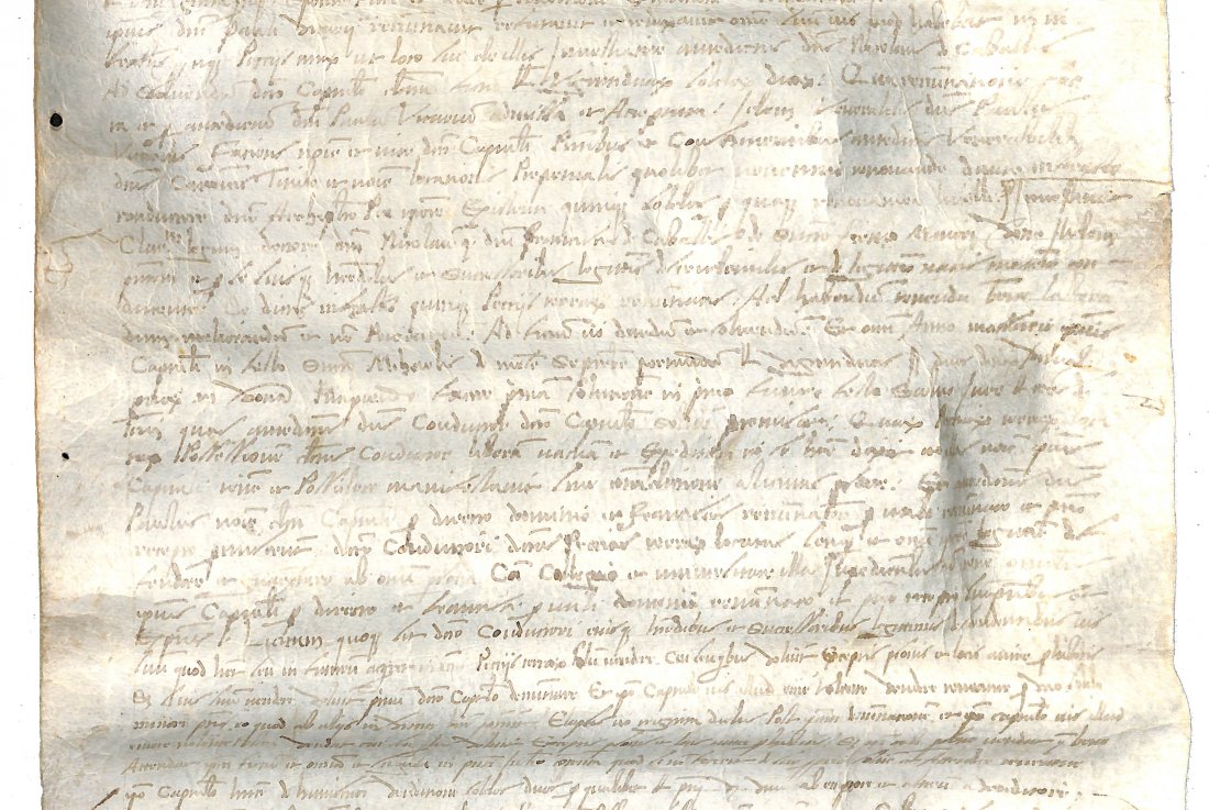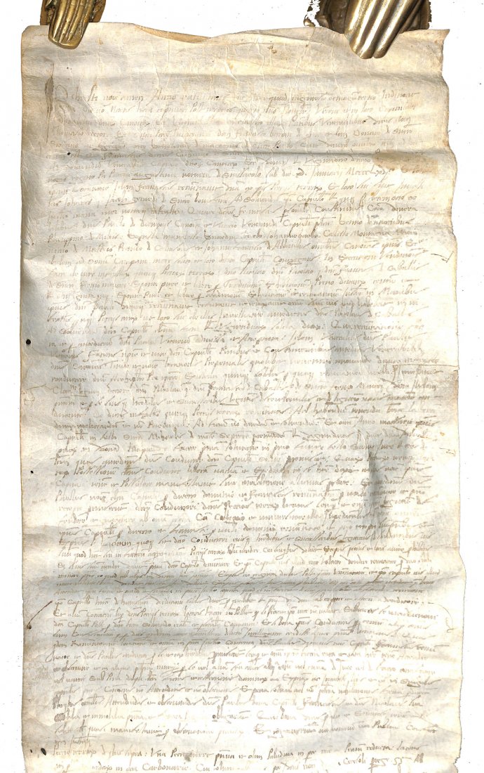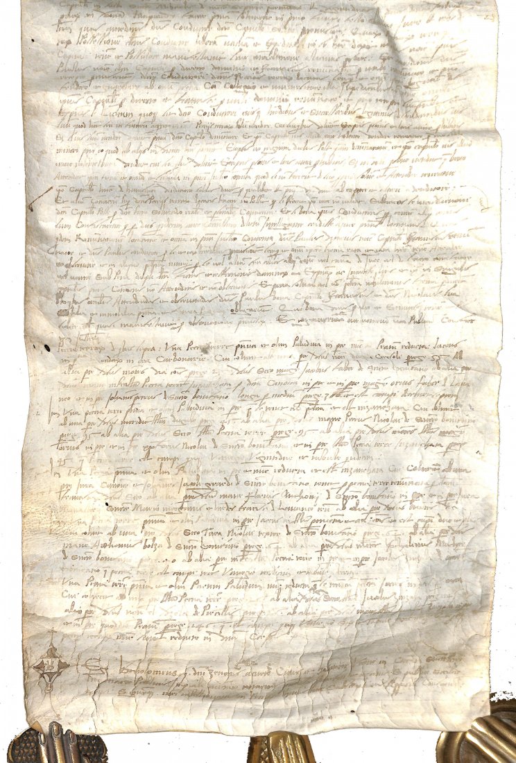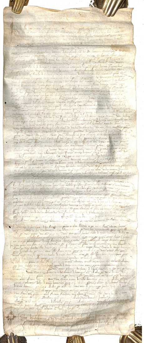 A scroll of parchment (63,5x25,5 cm), written in sepia ink by a 15th century cursive writing. Text in Latin.