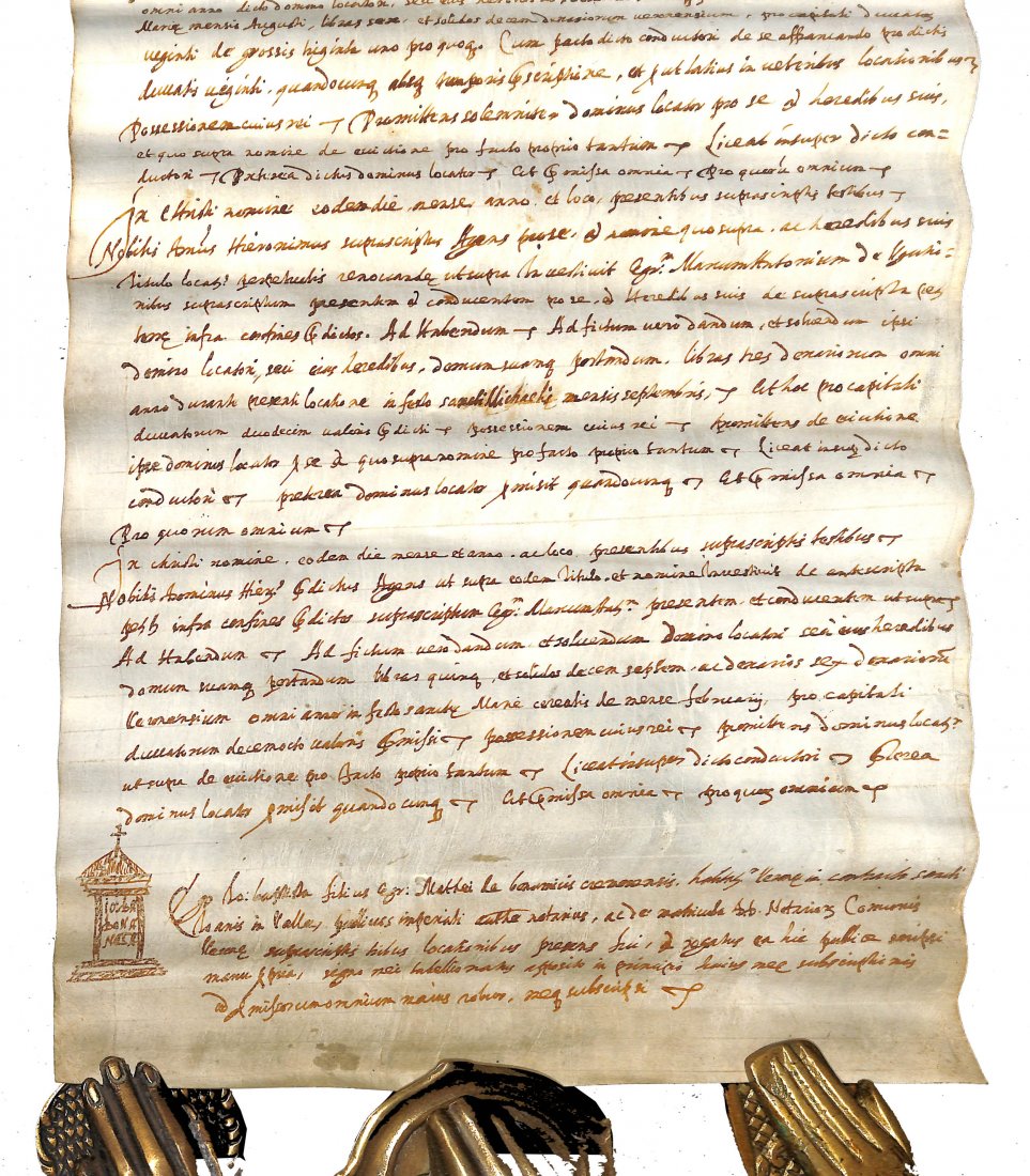 As in rental agreement of the previous lot, the payment is annually agreed "on the day of the Assumption of Mary", the 15th of August, and the sum to correspond is a part of the harvest and a "good capon".