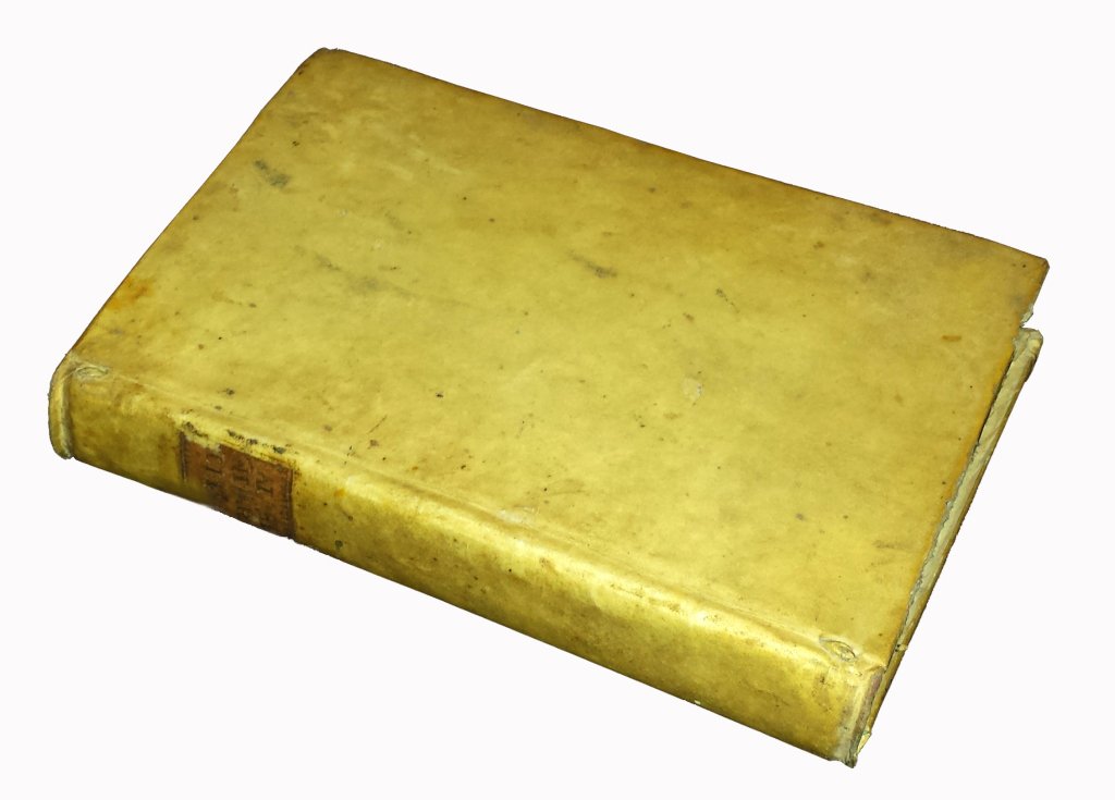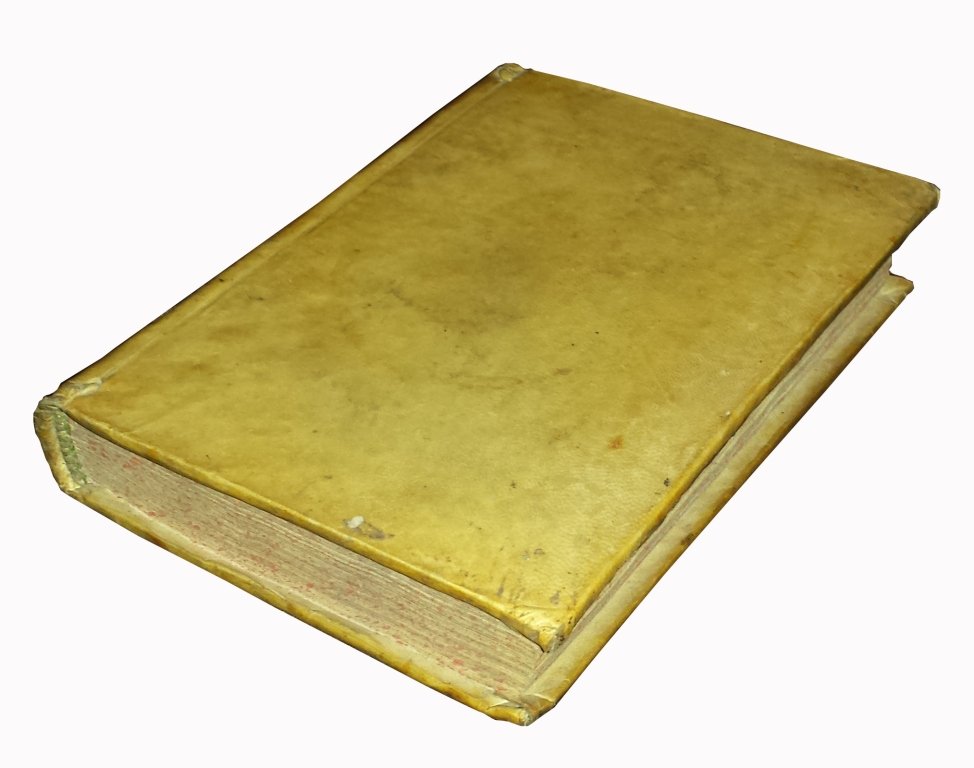 Large 8vo, contemporary stiff vellum with ochre label and gilt title at spine, red sprinkled edges, pp. [4], 385, [4, Index].