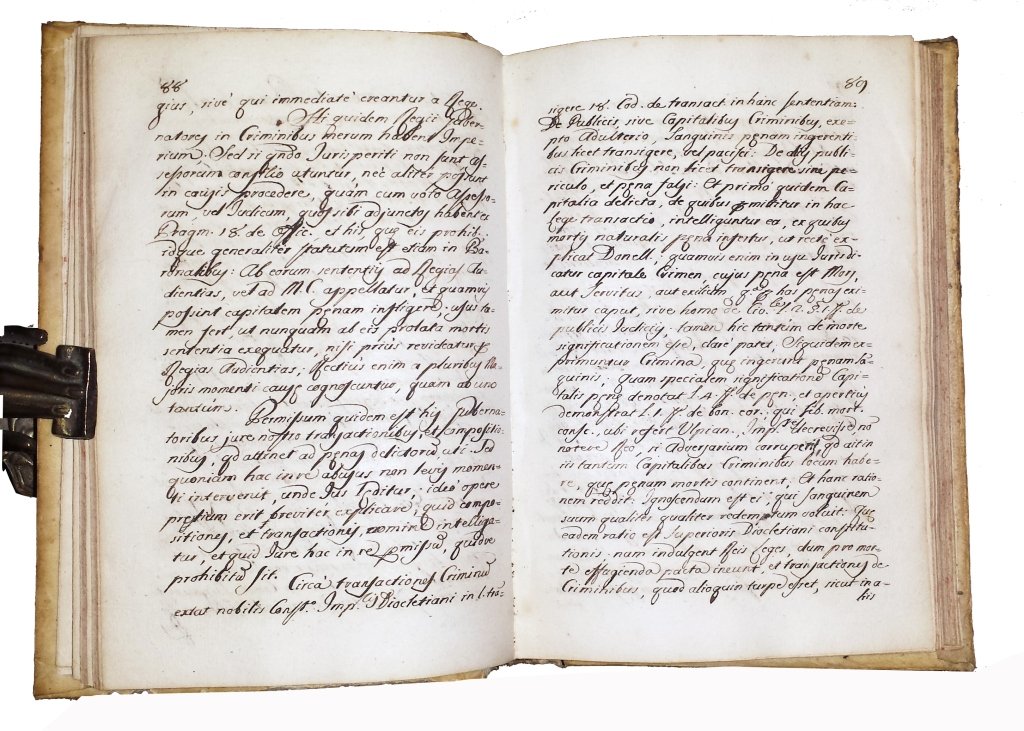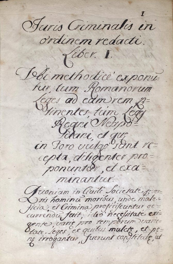 Scarce manuscript of Caravita's Institution of Criminal Law according to Roman Law and to the laws of the Naples Kingdom.