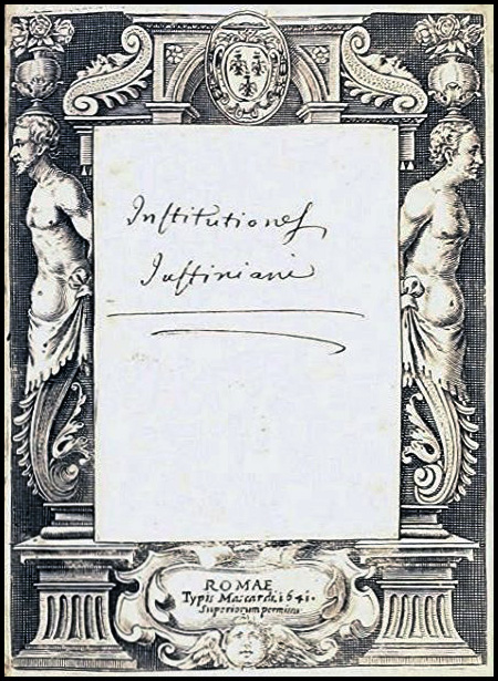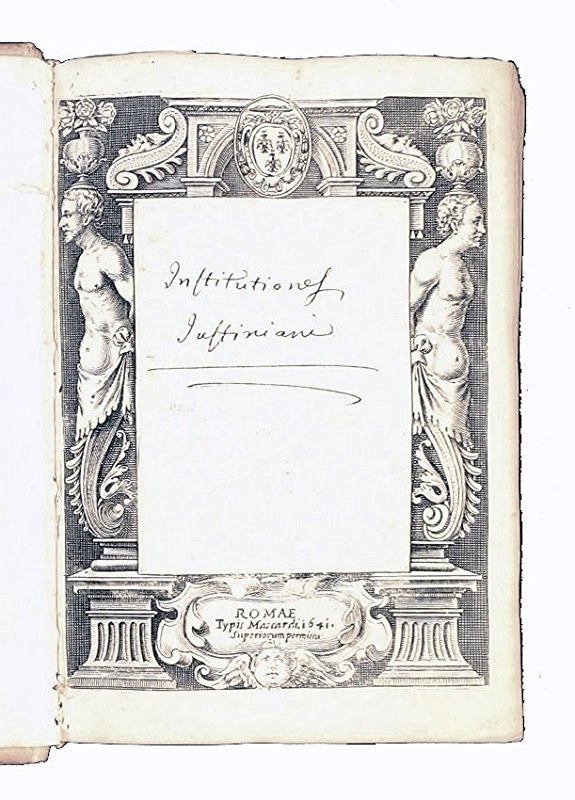 Anonymous. Institutiones Justiniani. Romae: Typis Mascardi, 1641 (but between the end of the 17th century and the beginning of the 18th cenury).