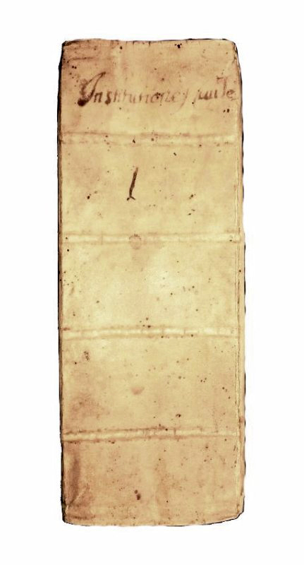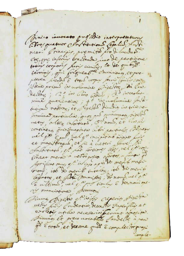 A voluminous and interesting manuscript on juridical matters (Justinian institutions); it is a study copy, written probably on late 1600.