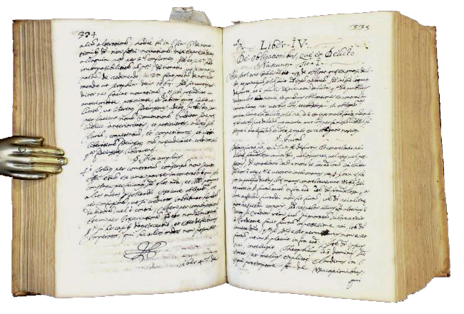 Provenance: Even if the book has no signature and no ownership inscription, it comes for sure from the private collection of the heirs of the Romanelli's family (a noble family, from the province of Rome, of landowners, priests, lawyers and administrators of ecclesiatical properties). Furthermore, it can be attributed to Pietro Angelo Romanelli (Domino Petro Angelo de Romanellis), since the handwriting of the text and the binding of the book are analogous to those of another manuscript written by this author offered in this auction.