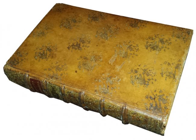 Three volumes, folio (390x260 mm), full roan calf binding (lightly worn), six raised bands spine, double morocco labels with gilt titles and decoration an spine sector, red colored edges, end-leaves in marbled paper, ff. [2], pp. 8, ccxliv, 695, [1, blank] for first volume, pp. xiv, 30, 706 [but, 708] for second volume, pp. lxxij, 956, lvj for third.
