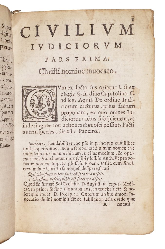 Uncommon first edition of Panciroli's civil law procedure, published posthumously, with the additions of Agostino Faustini.