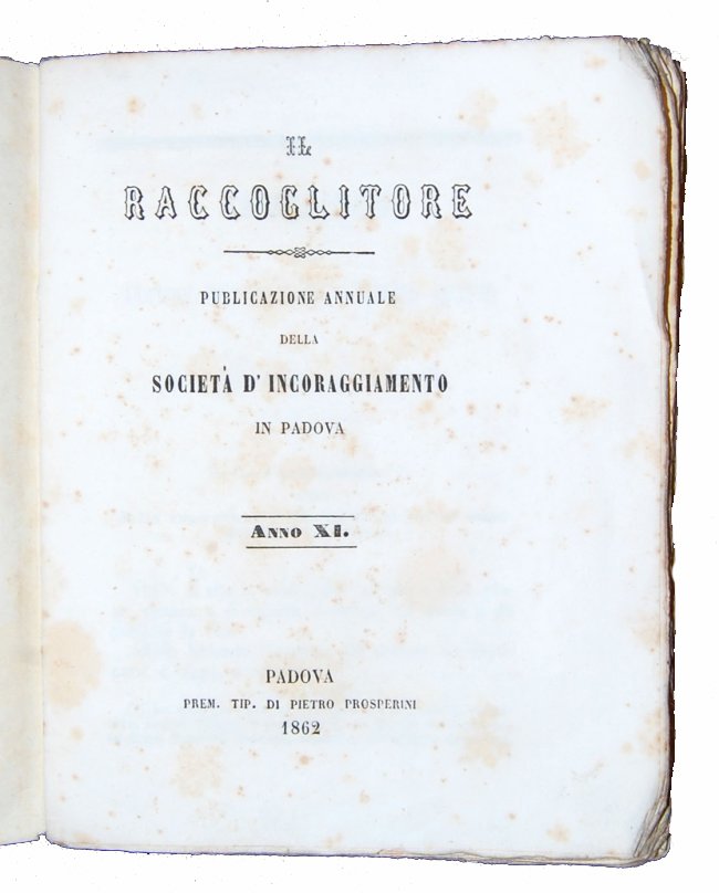 [2.]: Il Raccoglitore - Pubblicazione annuale della società d'incoraggiamento in Padova. Anno XI. Padova: Prem. Tip. di Pietro Prosperini, 1862.