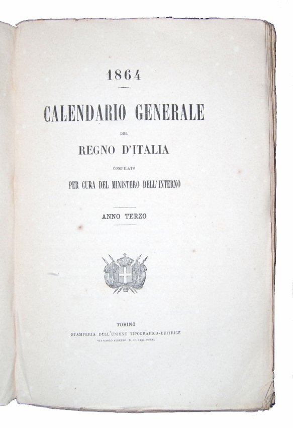 [1.]: 1864. Calendario generale del Regno d'Italia compilato per cura del Ministero dell'Interno. Anno terzo. Torino: Stamperia dell'Unione tip. editrice torinese, 1864.