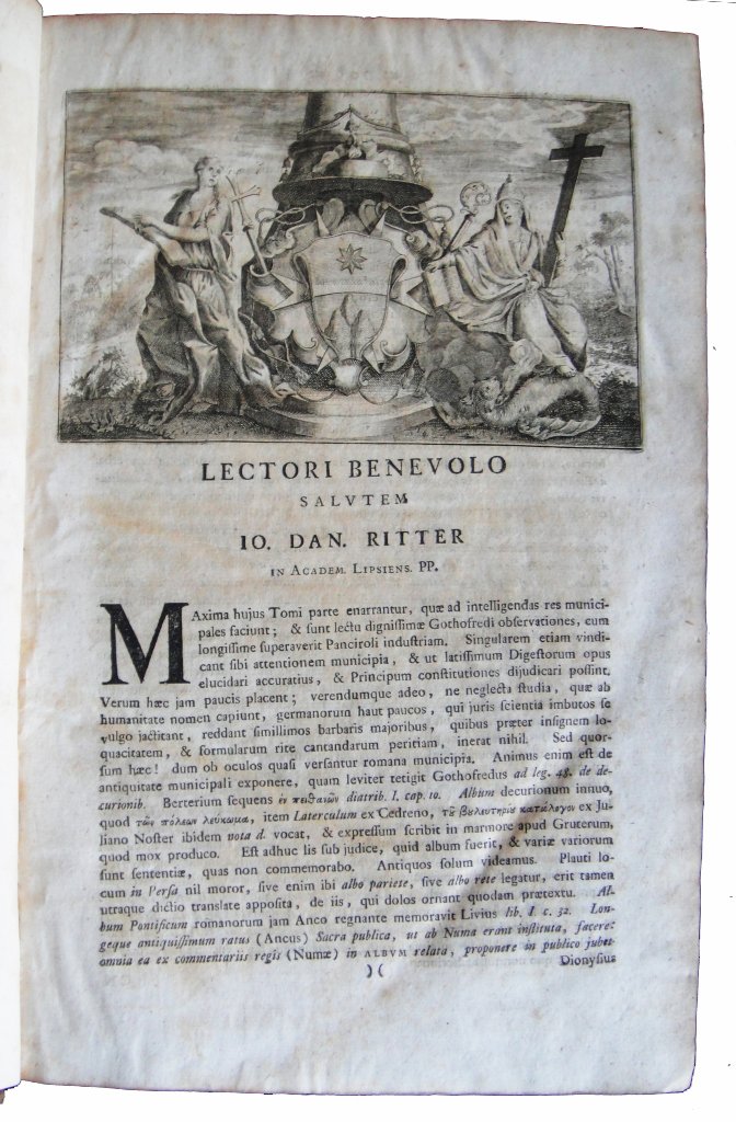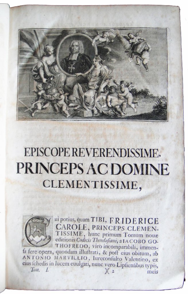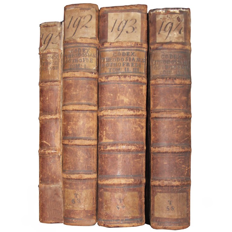 German edition of Codex Theodosianus with the renowned commentary by Jacques Godefroy, that was the first modern edition of the Codex. It remains a masterpiece of scholarship and erudition.