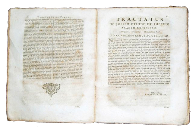 Arnold Vinnen (Vinnius; Monster 1588 - Leiden 1657), jurist, prof. Pandette University of Leiden (1633-57); one of the greatest masters of the Dutch school. Main works: Jurisprudentiae contractae sive partitionum Juris Civilis libri IV (1631); In quatuor libros Institutionum imperialium commentarius (1642); Iustiniani institutionum libros quattuor cum notis illustrated (1646); Tractatus de quattuor pactis de iurisdictione, collationibus et transactionibus (1651).