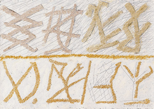 RICCARDO LICATA Torino 20/12/1929 Senza titolo, 2005 tecnica mista su carta cm. 21x29,5; firma e anno in basso a destra, dichiarazione d'autenticità dell'artista su foto.