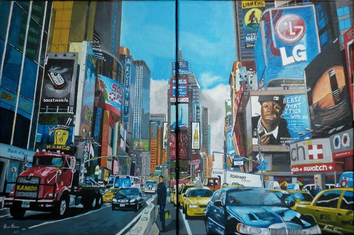 Fabrizio Rossin "Times square" acrilici dittico su tela cm. 60x40 cm. 40x30 caduna tela