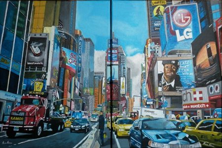 Fabrizio Rossin "Times square" acrilici dittico su tela cm. 60x40 cm. 40x30...