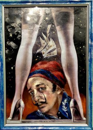Quimet Sabatè "Omaggio a Dalì" olio su cartoncino cm. 42x30 con graziosa cornice