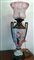 Lampada a petrolio Vittoriana Inghilterra Birmingham Hinks & Son in bronzo e porcellana dipinta, vetro acidato di notevole qualità, altezza totale cm 61