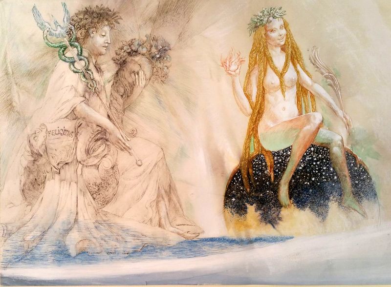 Silvano Gilardi (Abacuc) "La Dea" tecnica mista su cartoncino cm 35x50