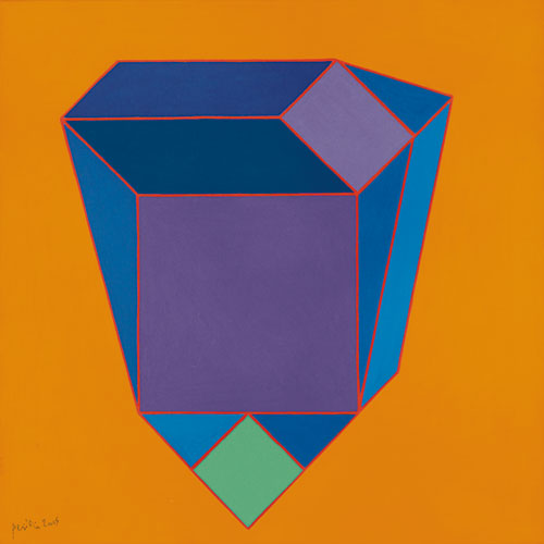 ACHILLE PERILLI Roma 28/01/1927 Il Grinta, 2005 tecnica mista su tela cm. 50x50, firma e anno in basso a sinistra, titolo, firma e anno al retro, dichiarazione d'autenticità e archivio dell'artista, timbro della Galleria Perlini Arte (RC) su foto.