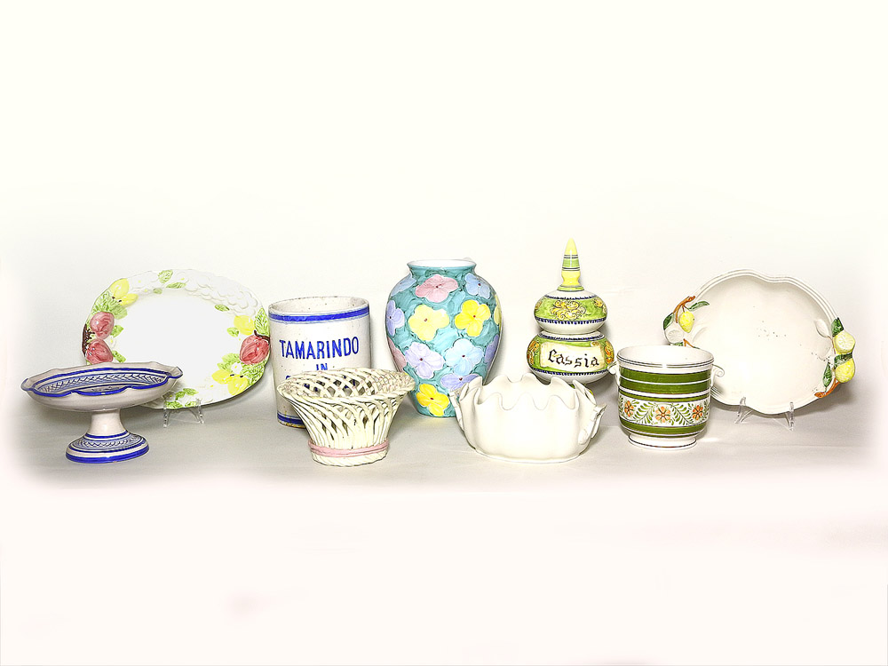 Lotto di oggetti in ceramica smaltata tra cui alcuni vasi