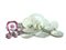 Servito di piatti in terraglia Wedgwood completo per sei persone, con piatti piani e piattini doppi, corredato da dieci tazze da te decorate in monocromia rosa e alcuni vassoietti, alcuni difetti (53)