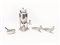Lotto di oggetti in metallo argentato tra cui un samovar, una coppia di fagiani soprammobili e una scatola con coperchio a finta malachite (4)