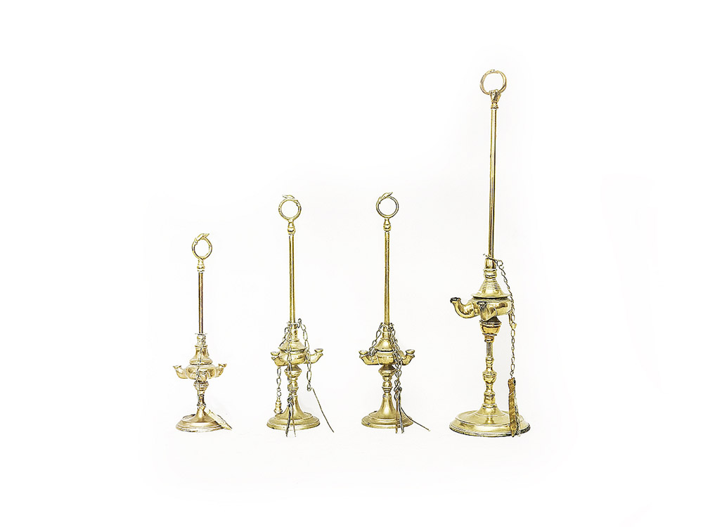 Quattro antiche lucerne fiorentine in ottone dimensioni diverse