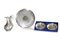 Lotto di oggetti in metallo argentato vassoio rotondo, caraffa e coppia di...